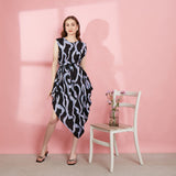 - Midi dress Assymetris detail all over print